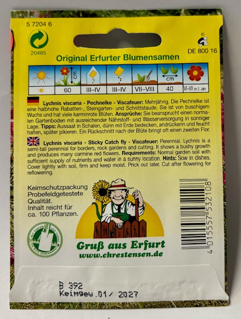 Die Pechnelke ist eine halbhohe Rabatten-, Steingarten- und Schnittstaude. Sie ist von buschigem Wuchs und hat viele karminrote Blüten.
