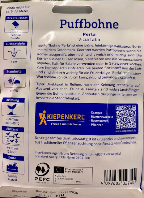 Die Puffbohne 'Perla' ist feinkörnig und weist einen milden Geschmack auf, der jeden Gaumen erfreut. Mit einer Wuchshöhe von ca. 75 cm ist sie besonders standfest und eignet sich daher für jeden Garten. Ernten Sie die Bohnen, wenn sie ausgereift und leicht weich sind. Blanchieren Sie die Körner und genießen Sie sie frisch oder gefroren in verschiedenen Gerichten. Sie binden Stickstoff aus der Luft und sind dadurch wichtig für die Fruchtfolge. Erleben Sie die vielen Möglichkeiten, die die Puffbohne 'Perla' bietet, und lassen Sie Ihrer Kreativität im Garten freien Lauf. Ihre frischen Zutaten machen nicht nur Freude, sondern tragen auch zu einer gesunden Ernährung bei. Packen Sie mit uns Ihr Gartenprojekt an!Inhalt reicht für ca. 5 lfd Meter