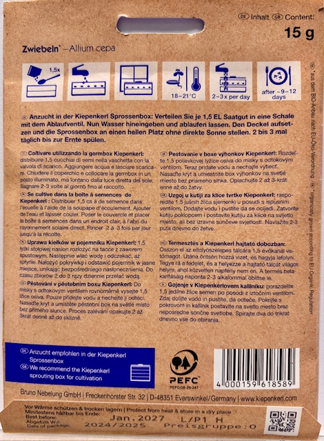 Zwiebelsprossen brauchen länger als andere Sprossenarten. Unbedingt Hygiene beachten!