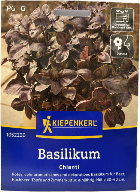 Ocimum basilicumHat dunkelrotes Laub und ein ausgeprägtes Aroma.