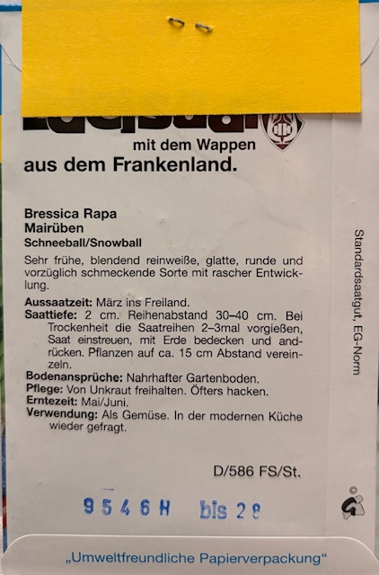 Sehr frühe reinweiße runde glatte und vorzüglich schmeckende Sorte.